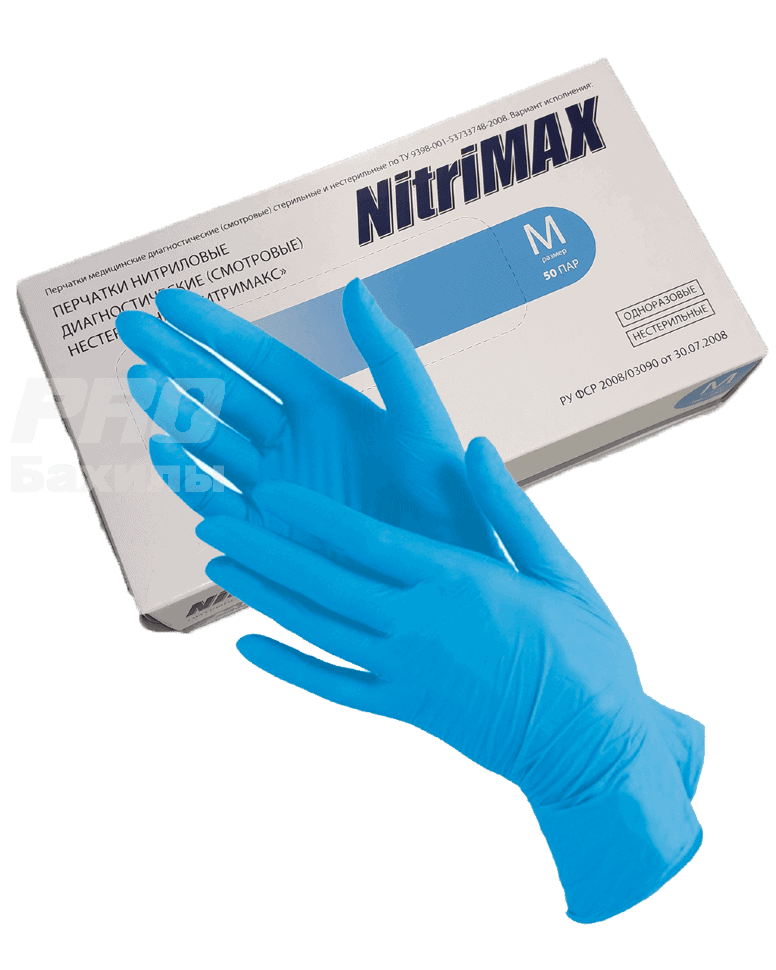 Одноразовые нитриловые перчатки Nitrimax (голубые), все размеры
