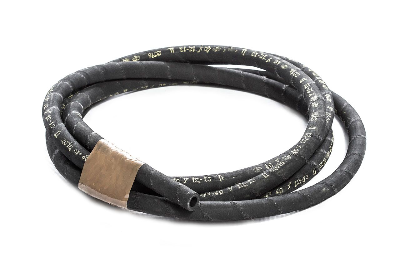 Описание: Рукава состоят из внутреннего резинового слоя, одной или нескольких тканевых прокладок и наружного резинового слоя. Предназначены в качестве гибких соединительных трубопроводов для гидравлических, воздушных, топливных, масляных и других систем в специальной технике. Рукава герметичны при испытании давлением жидкости 2Р, где Р- рабочее давление. Наружная поверхность рукава имеет след от обмоточной ткани.