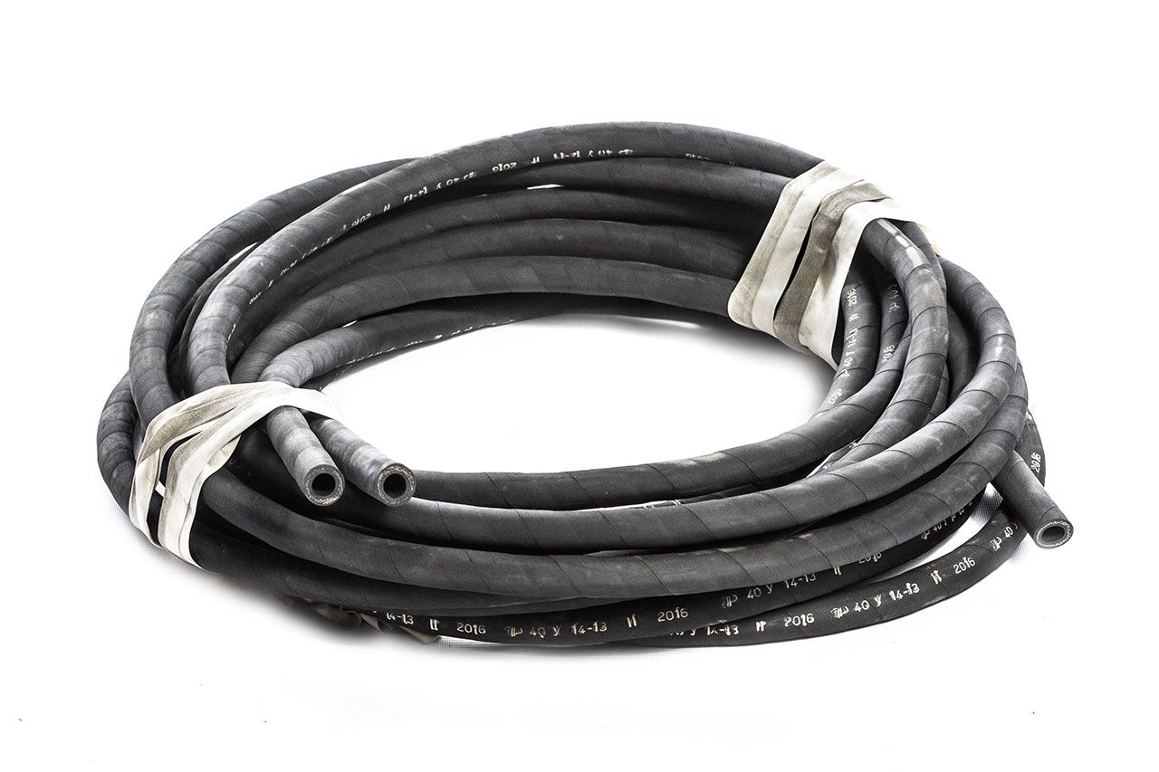 Описание: Рукава состоят из внутреннего резинового слоя, одной или нескольких тканевых прокладок и наружного резинового слоя. Предназначены в качестве гибких соединительных трубопроводов для гидравлических, воздушных, топливных, масляных и других систем в специальной технике. Рукава герметичны при испытании давлением жидкости 2Р, где Р- рабочее давление. Наружная поверхность рукава имеет след от обмоточной ткани.
