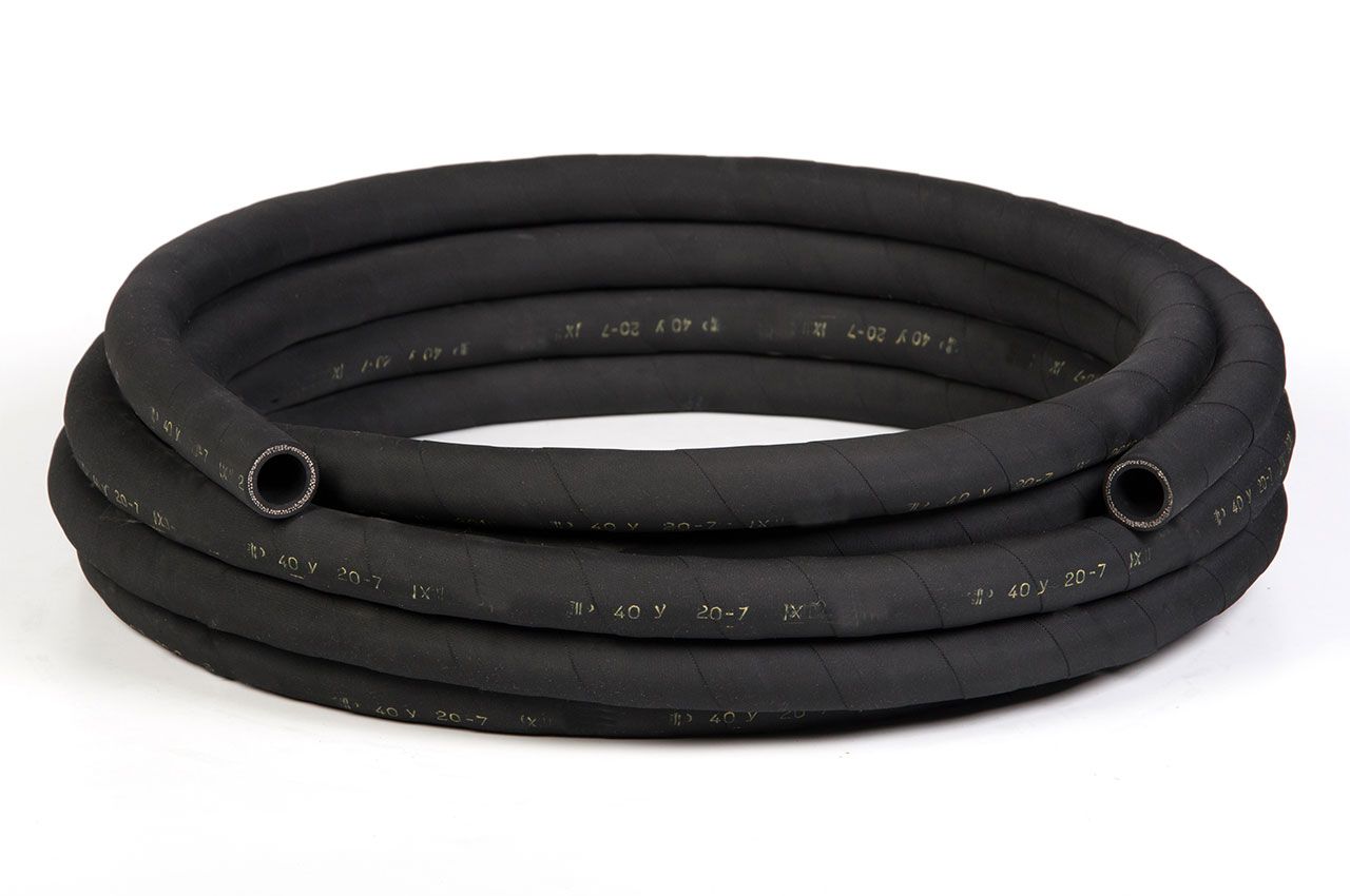 Описание: Рукава состоят из внутреннего резинового слоя, одной или нескольких тканевых прокладок и наружного резинового слоя. Предназначены в качестве гибких соединительных трубопроводов для гидравлических, воздушных, топливных, масляных и других систем в специальной технике. Рукава герметичны при испытании давлением жидкости 2Р, где Р- рабочее давление. Наружная поверхность рукава имеет след от обмоточной ткани.